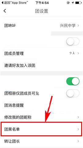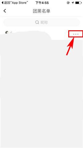 3)然后上划界面进入【团黑名单】,接着选择相关用户,并点击其后方的【...】图标;(如下图)