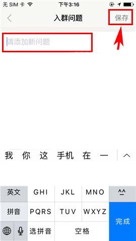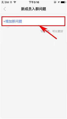 4)随后点击【增加新问题】,最后在设置了入群问题后点击【保存】即可。需要注意的是,我们只能设置最多三个新人入群需要回答的问题。(如下图)
