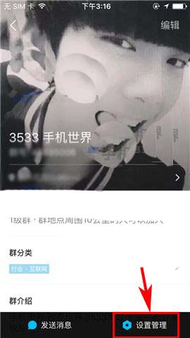 2)接着在“群组”列表中选择自己所创建的相关的群组,随后在进入群主页界面时点击【设置管理】;(如下图)