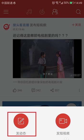 4、在弹出框界面,选择“发动态”,如下图所示: