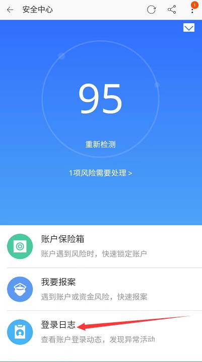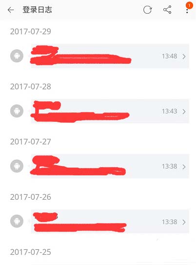 4、在安全中心中点击登陆日志,就可查看最近登陆的设备,地区和登陆ip