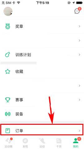1)点开咕咚运动,首先点击首页右下角处的【我的】,随后上拉界面进入【订单】;(如下图)