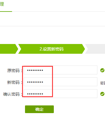 5、确认之后进入下一个界面,“原密码”“新密码”“确认密码”,三个选项,一次填入相应的空白,点击确认;