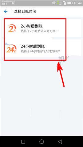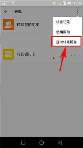 2)接着点击【延时转账服务】,随后再设置【到账时间】;(如下图)