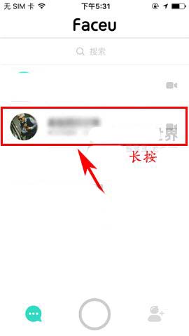 1)点开Faceu激萌,首先点击屏幕中左下方的“消息”图标,然后【长按】所要删除聊天消息;(如下图)