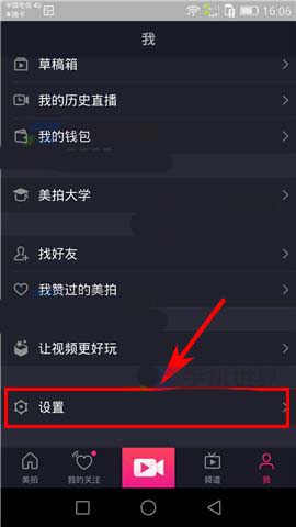 1)点开美拍APP,首先点击首页右下方的【我】,然后下拉界面进入【设置】;(如下图)