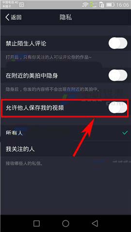 2)随后点击【隐私】,最后关闭【允许他人保存我的视频】就完成啦!(如下图)