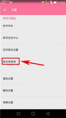 2)接着再点击【黑名单管理】,随后选择所要移出黑名单的用户,并将其向左滑动即可将其从列表中移除。(如下图)