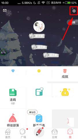 1)首先我们先打开软件点击【我】进入到个人界面,接着再点击右上角的【齿轮】进入设置。(如下图)