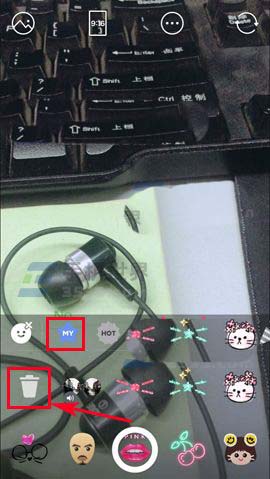 1)首先我们打开B612咔叽,点击左下角的【贴纸】,然后先点击【MY】,之后点击【垃圾桶】图案;(如下图)