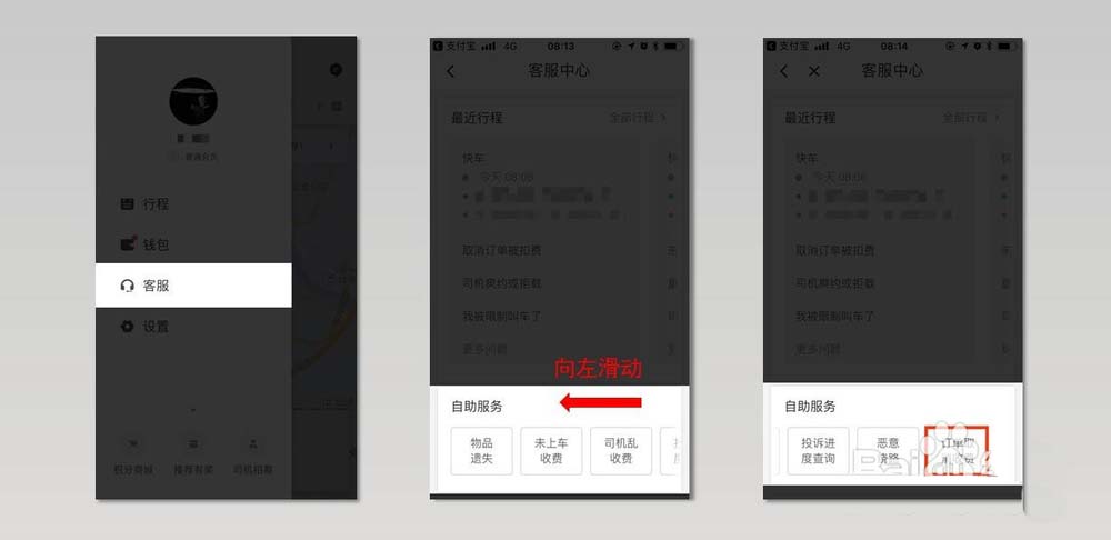 我相信很多人会选择第一种,但面对取消订单收费的事实却百般无奈,只能待到空闲时致电滴滴客服申诉。那么有更好的方法处理吗?其实是有的,只是滴滴藏得比较深。