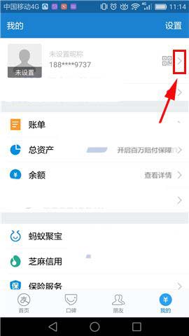 1)首先先打开【支付宝】的界面,然后我们再点击右下角的【我的】,打开后接着点击【箭头图标】。(如下图)