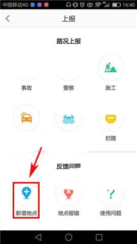 1)首先先打开【高德地图】的界面,然后我们再点击【上报】,打开后再点击【新增地点】。(如下图)