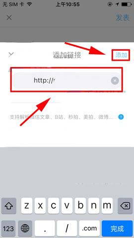 3)选择完话题后我们在点击下面的【链接】,接着输入完要添加的链接后再点击【添加】即可。(如下图)