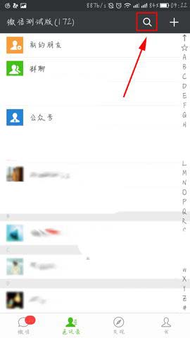 1)首先,我们打开微信点击上面的【搜索】,接着输入要查找的记录或者文件的【关键字】。(如下图)