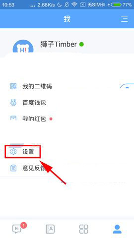 1)我们打开百度Hi软件点击右下角的【人形】,接着再点击进入【设置】界面。(如下图)