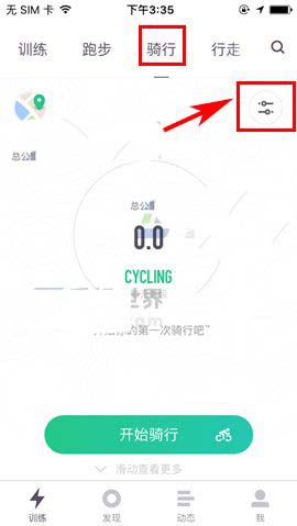 1)点开Keep,首先点击“骑行”界面中的【设置】图标,随后进入【播报间隔距离】一栏;(如下图)
