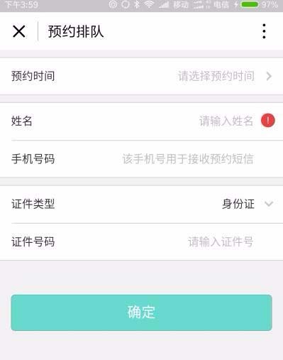 9、在弹出的预约排队页面中,输入我们的一些个人信息,最后点击确定按钮,就可以自动进行排队了,这样就免去了到银行后再排队的麻烦。