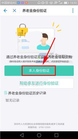 2)打开养老金资格认证之后我们继续点击【本人身份证验证】就完成了。(如下图)