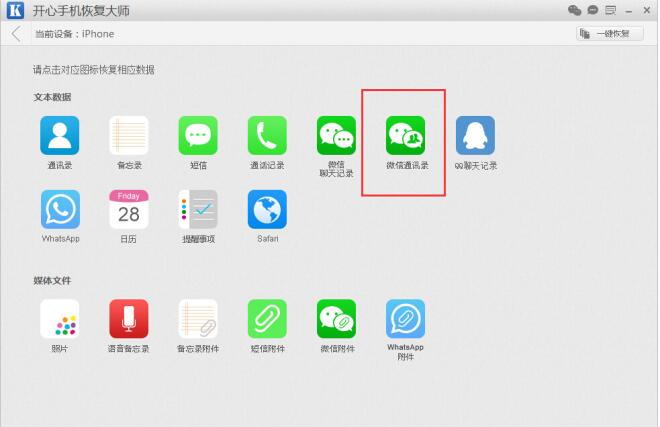 使用开心手机恢复大师软件找回微信好友详细教程,针对苹果iPhone微信用户
