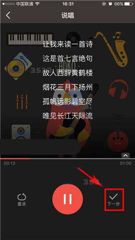 2)选择一种模式,可以自定义说话录制也可以选择里面现有的板块录制,点击录音3秒后即可开始录制,录制完成点击【下一步】即可。(如下图)