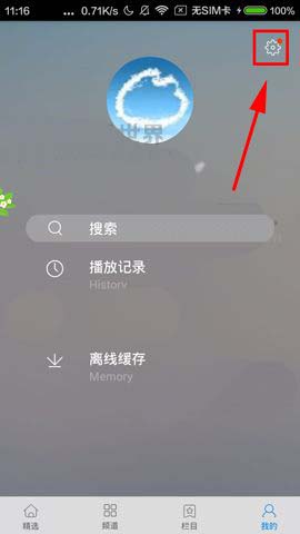 1)我们先打开新浪视频软件点击【我的】,接着再单击右上角的【齿轮】进入设置功能。(如下图)