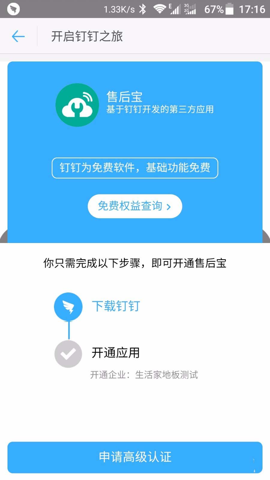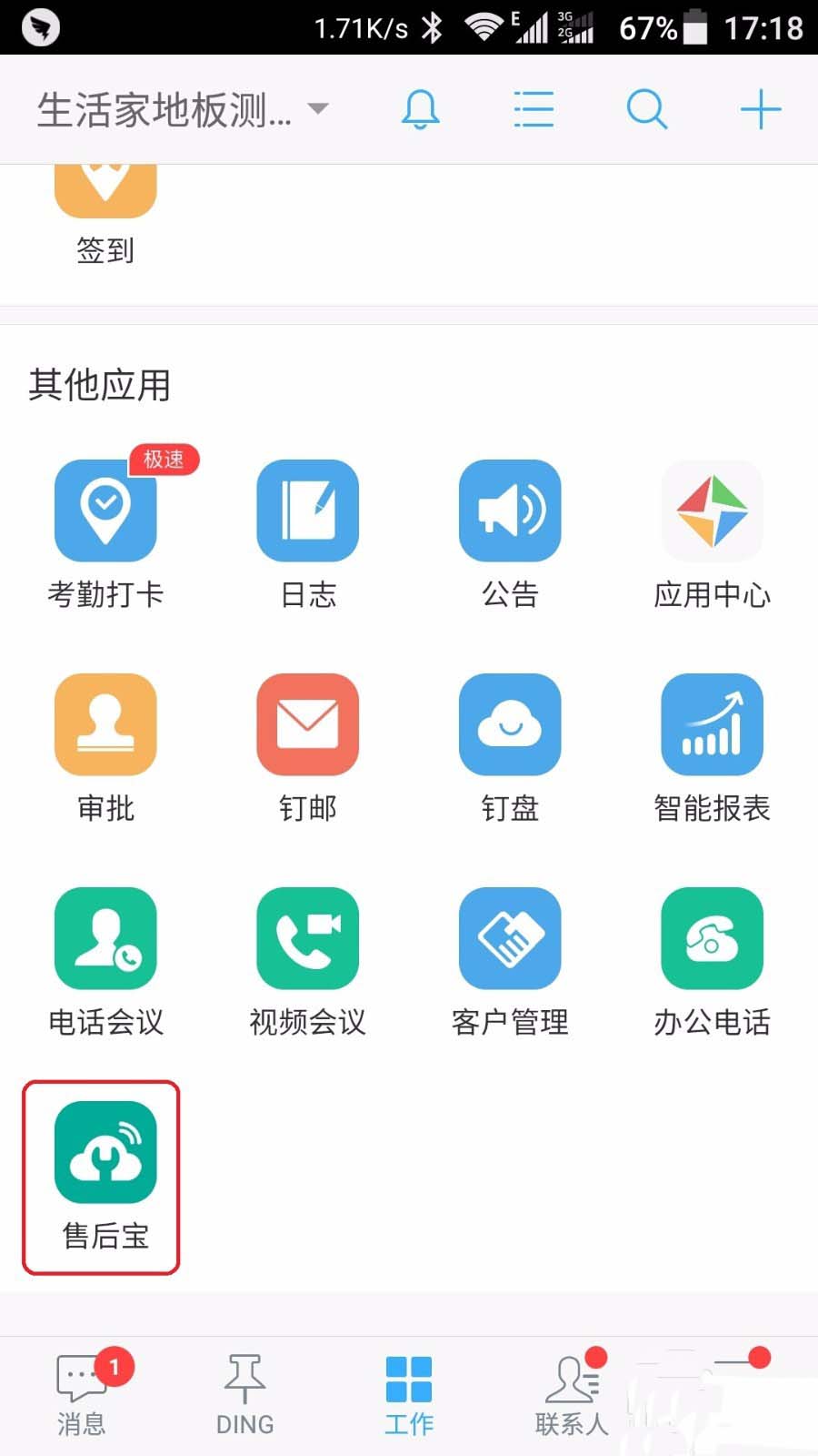 1、首先你要是一个钉钉团队的管理员,如果是新建的钉钉团队的话,需要至少6个人才能使用,通过钉钉的应用市场找到售后宝