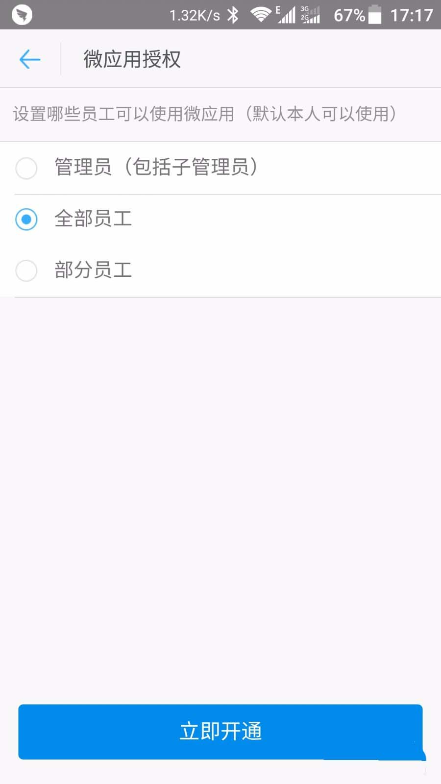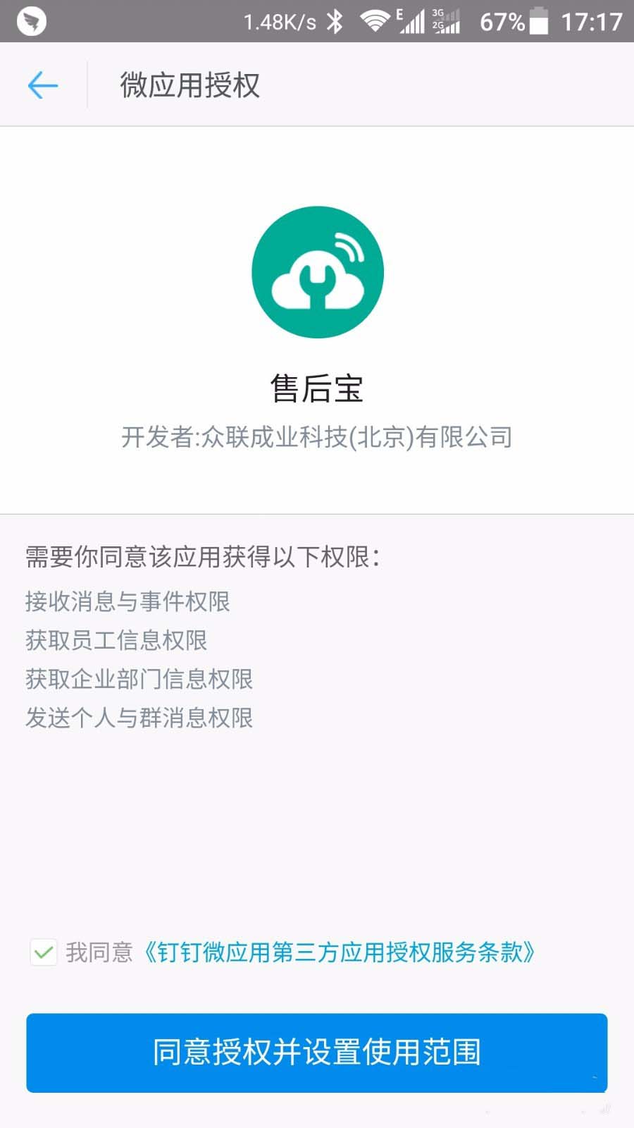 2、按照授权过程,把这个应用添加到钉钉中,需要注意,给哪些部门开通这个应用就选择通讯录中的哪个部门。
