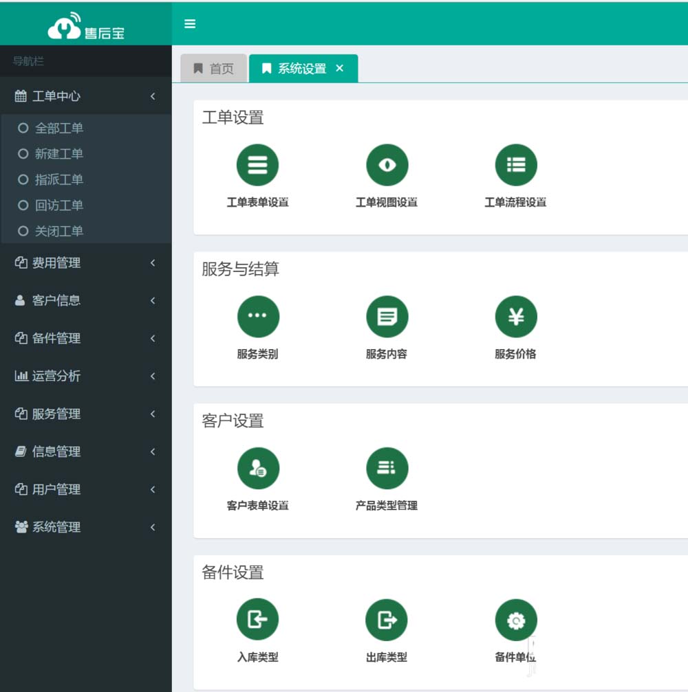 6、备件管理、服务费用管理等系统设置(可以在系统设置中维护服务收费、备件价格等),有问题可以在他们的产品介绍中找到联系方式