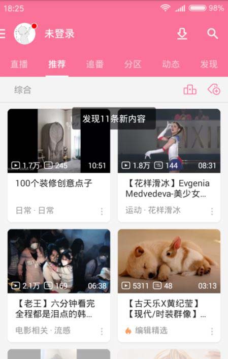3、安装好软件之后,进入主页,主页显示推荐的视频等内容