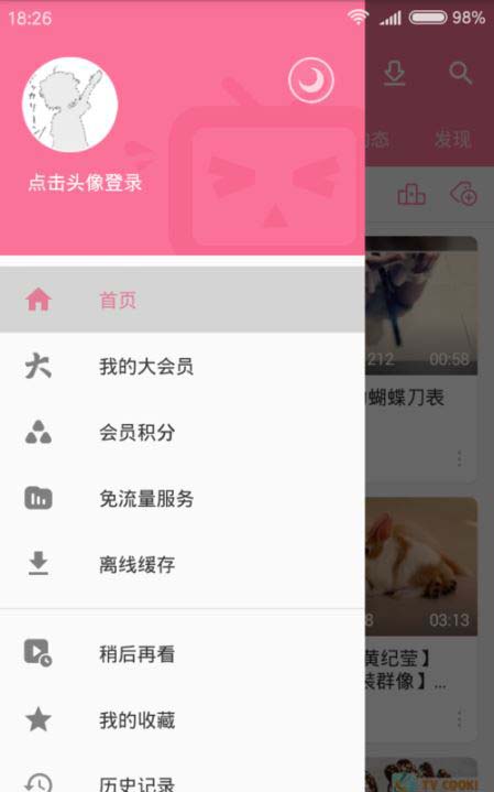 4、进入首页之后,点击左上角的头像,然后右拉页面,找到免流服务