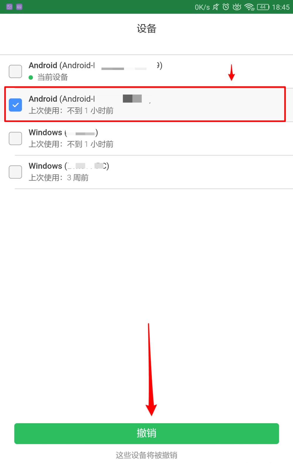 3、【选择设备】找到不属于自己的设备(即想登出的设备)