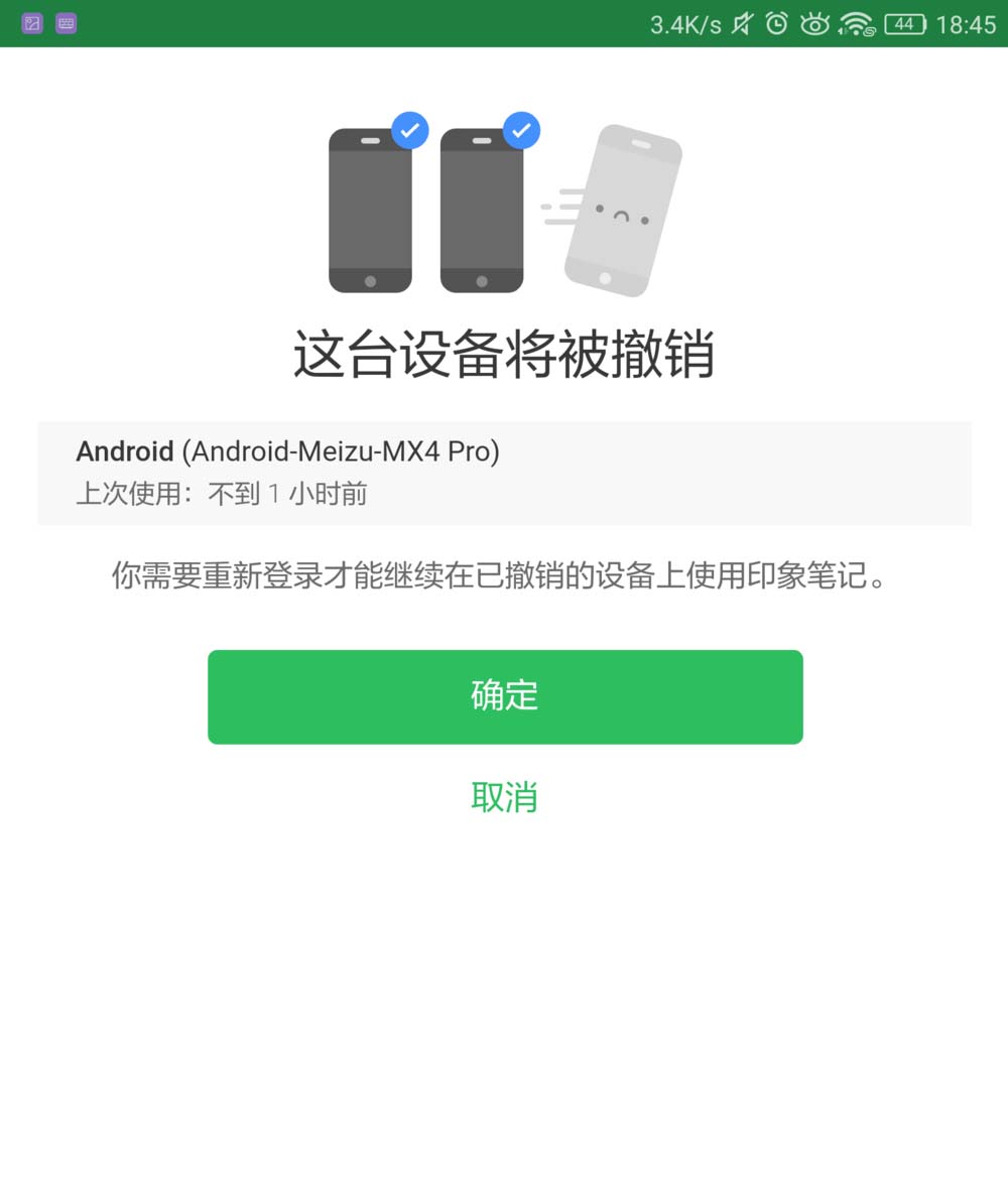 如果你借用了别人的设备登录了自己的印象笔记账户,而事后发现自己忘记退出了,担心隐私泄露又不好意思向朋友开口该怎么办?现在给出远程退出印象笔记的办法,不需要尴尬地向朋友再借一次设备,直接在自己的手机上操作就可以啦!