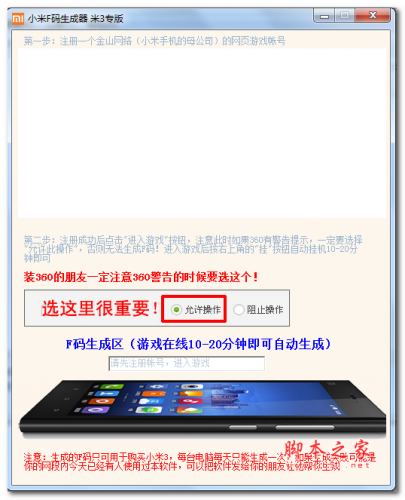 OK,不用管了,挂机10-20分钟后生成器会自动生成一个小米3的F码,注意,只能用来买小米3哦!