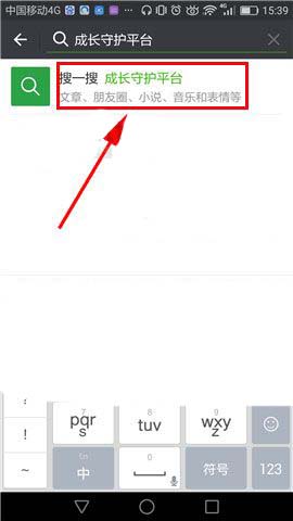 1)首先先打开【微信】界面,然后再点击【搜索图标】,打开后搜索【成长守护平台】,然后再点击打开。