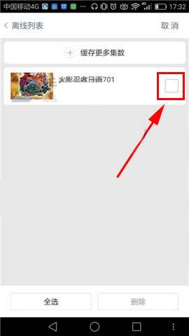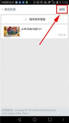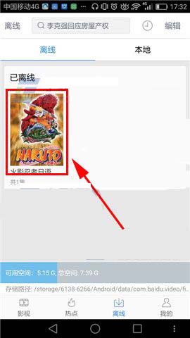 1)首先先打开【百度视频】的界面,然后我们再点击【离线】,打开后接着点击你要删除的视频,比如火影忍者。