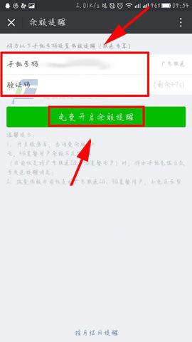 2)来到充值界面后点击下面的【余额提醒】,然后输入手机号码及验证码后点击【免费开启余额提醒】即可。(如下图)