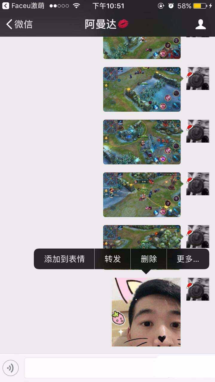 6、动图可以直接添加为表情:动图我们转发到微信之后,是可以直接当做表情使用的,也可以直接选择添加到表情,这样以后发的时候,直接去我的表情里进行选择就好了。