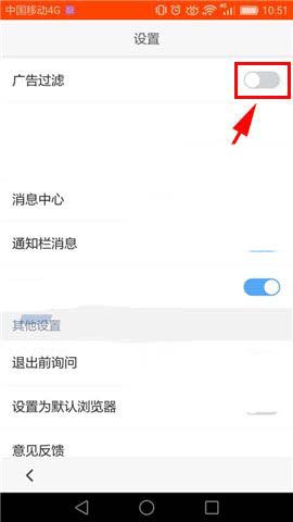 2)打开头像图标后我们继续点击右上角的【图标】,打开后接着点击【广告过滤】的圆圈部分就完成了。(如下图)