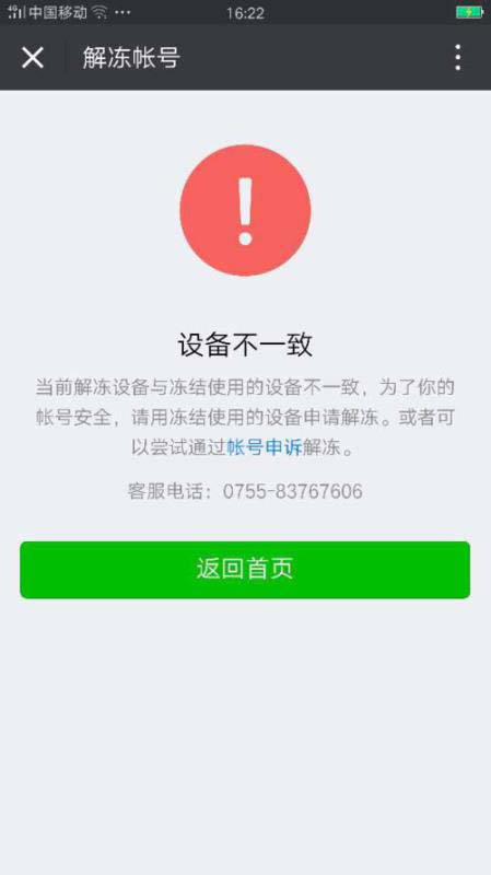 微信冻结与解冻设备不一致有以下几种可能: