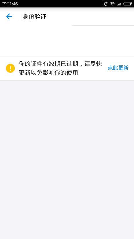 5、如果你的身份证过期的话就会出现下面的页面,点击点此更新
