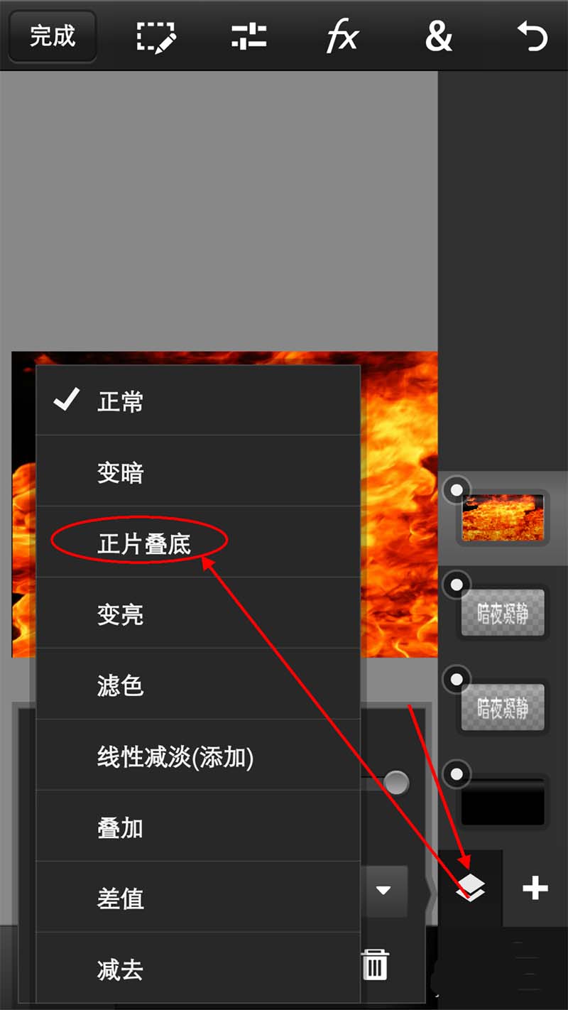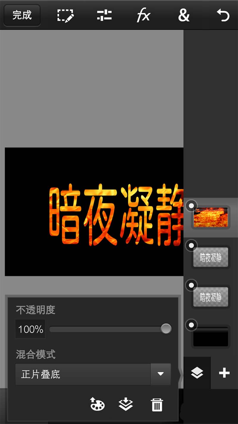 手机版Photoshop可以做出各种各样绚丽的文字效果,今天小编给大家讲一个简单的火焰文字效果吧。