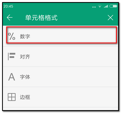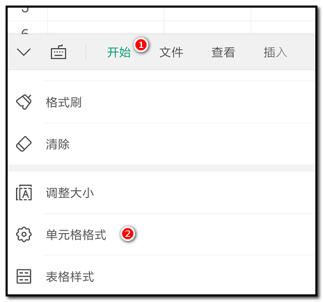 4、弹出各项命令,手指往上划动,到“单元格格式”这里点下。