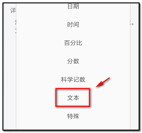 6、弹出各项格式,点选“文本”这一项,如下图所示。