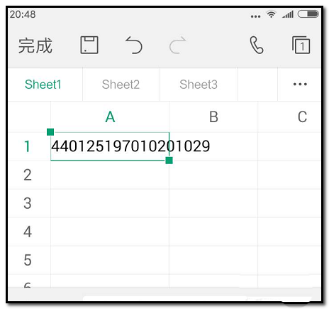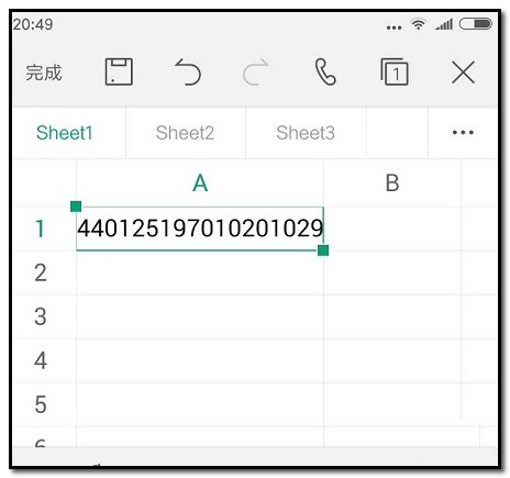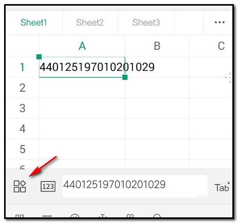 WPS手机版本电子表格,输入身份证号码时,不能直接输入,需要对单元格进行一些设置才行。具体操作如下。
