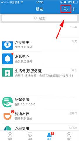 1)首先我们先打开【支付宝】,然后来到朋友界面打开通讯录选择一个联系人先。(如下图)