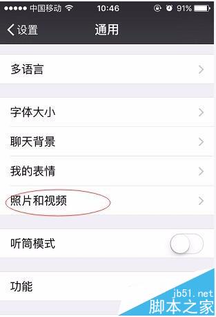 3、在通用功能中,我们可以看到“照片和视频”选项,我们点击进入;