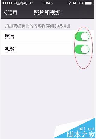 4、默认我们可看到照片和视频都是打开的,我们可以看到提示,拍摄和编辑后的内容保存到系统相册。意思就是默认是保存到相册的,已我们实际相符。
