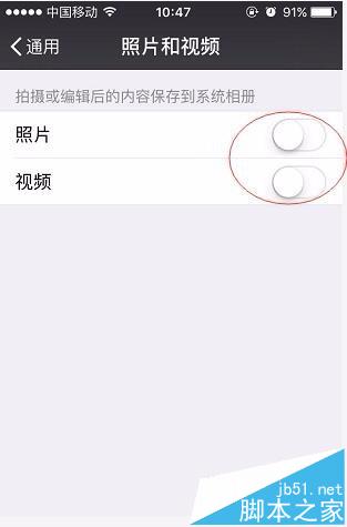 5、我们选择把两项都关闭,然后再试下看。这样我们拍摄的朋友圈图片和视频就不会自动保存了。