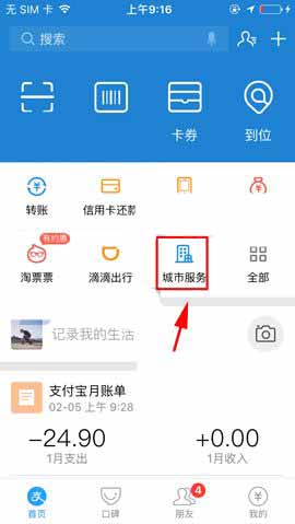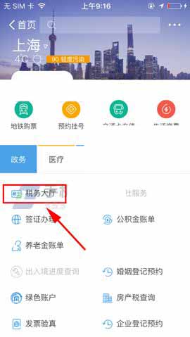 1)我们打开支付宝点击【城市服务】,然后再点击【税务大厅】。(如下图)